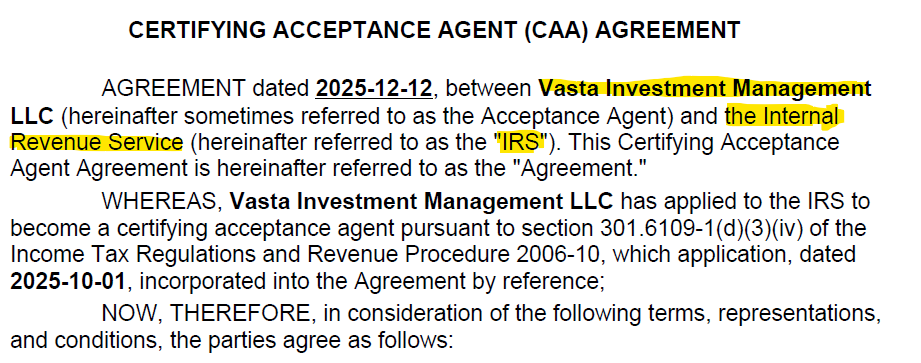 Evet. Vasta, IRS tarafından yetkilendirilmiş Certifying Acceptance Agent statüsündedir. IRS, Amerika Birleşik Devletleri Hazine Bakanlığı’na bağlı federal bir kurumdur (Amerikan Maliye Bakanlığı). ITIN başvuruları bu federal yapı kapsamında yürütülmektedir.